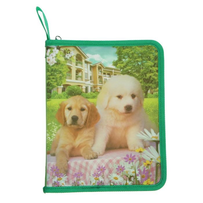 Папка для тетрадей А5 "Собаки" молния вокруг, пластик, 1 отделение, без ручек