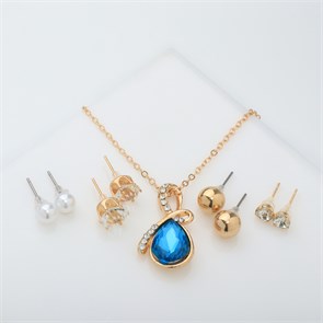 Гарнитур 5 предметов: 4 пары пусет, кулон «Капелька», цвет бело-голубой в золоте, 40 см