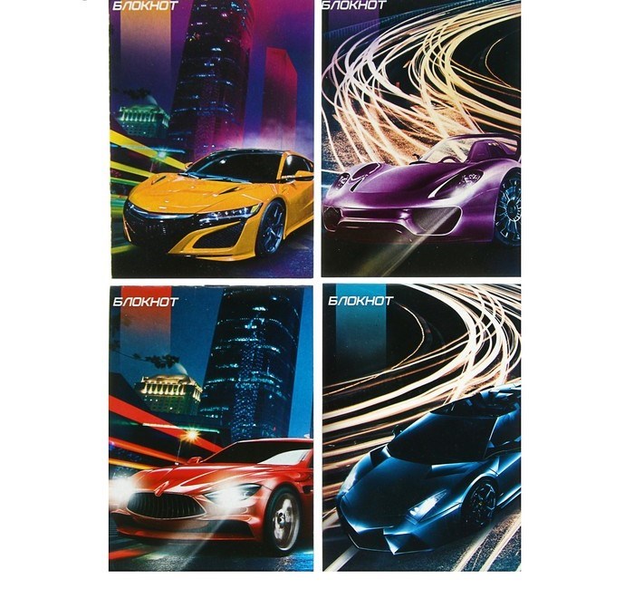 Блокнот А6, 24 листа на скрепке «Тачки», обложка картон хром-эрзац