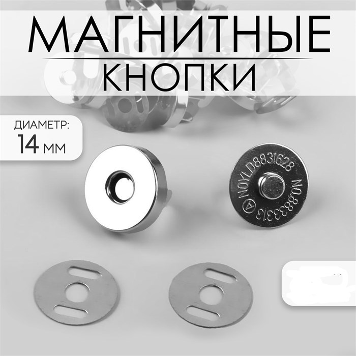 Кнопки магнитные, d = 14 мм, цвет серебряный