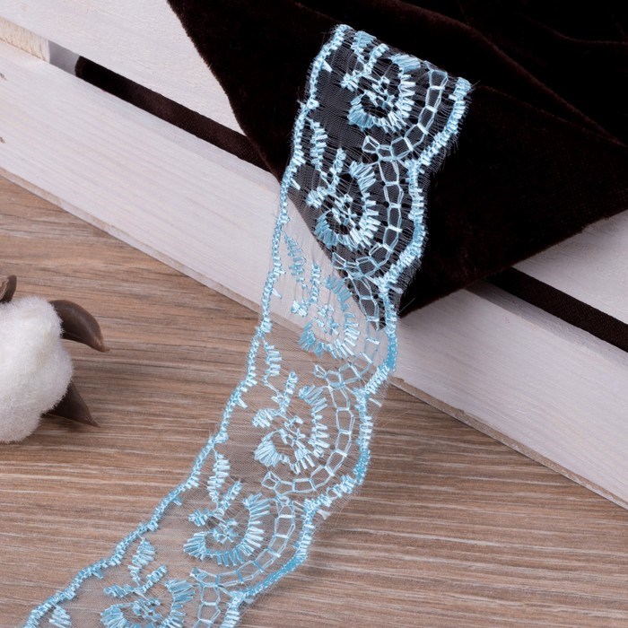 Кружево "Цветы" органза, ширина 40 мм, намотка 1 м, цвет голубой, полиэстер