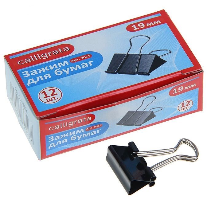 Набор зажимов для бумаг Calligrata, чёрные, 19 мм, 12 штук, в картонной коробке