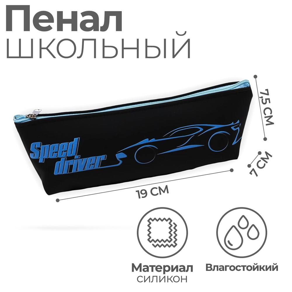 Пенал силиконовый "Speed driver" 1 отделение, объемный, влагостойкий, с рисунком, 7.5 х 19 х 4 см