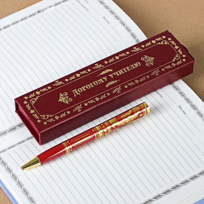 Ручка шариковая в подарочном футляре «Дорогому учителю», металл, чернила синие, 1.0 мм