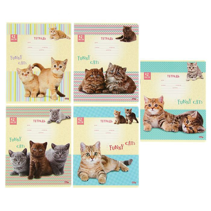 Тетрадь 12 листов косая линейка "Забавные котята", обложка картон хром-эрзац, белизна блока 82-86%