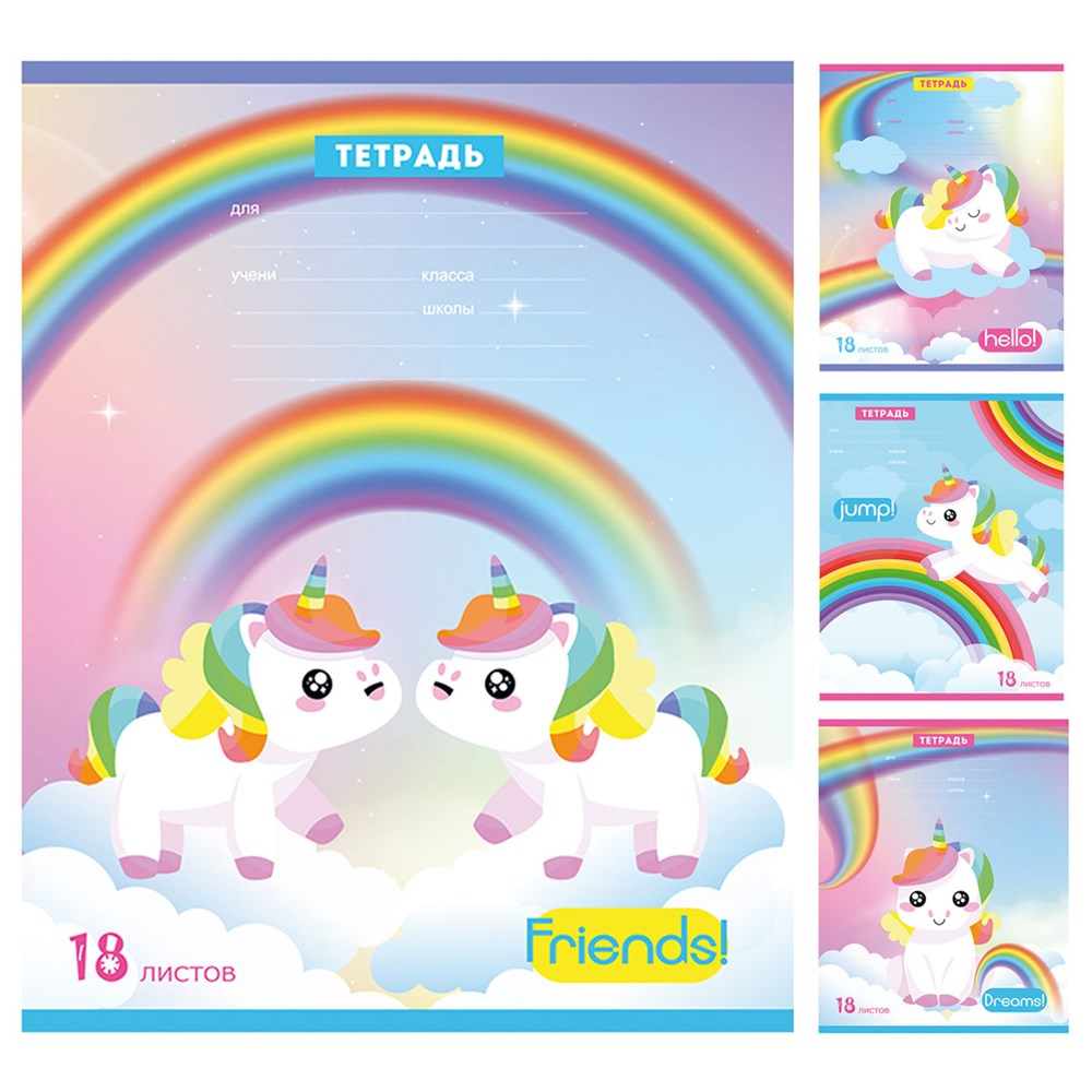 Тетрадь школьная 18 листов клетка А5 скоба "Hello, unicorn!" BG